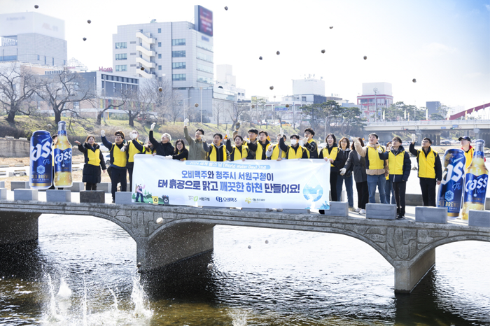 오비맥주는 매년 ‘세계 물의 날’을 기념해 물의 소중함을 되새기고 수자원을 보호하기 위해 청주, 광주, 이천 3개 공장 인근 하천 일대에서 환경 정화 활동을 전개하고 있다.