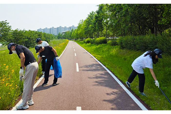 환경정화 활동을 벌이고 있다. (사진제공: 오비맥주)}